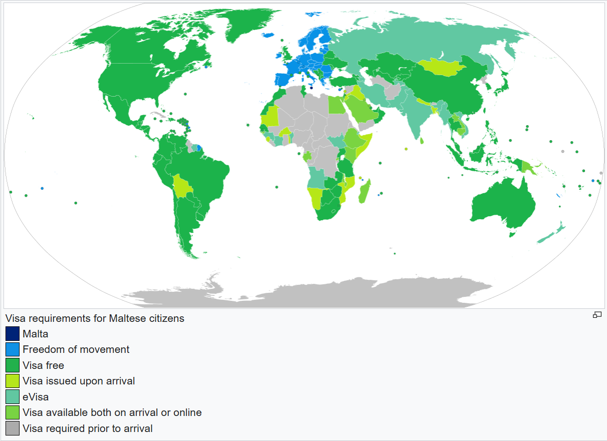 马耳他是英联邦,欧盟成员国,申根国之一,认可双重国籍,护照排名全球第七,持有者可自由通行(免签或落地签)世界上188个国家或地区(2025.9.15)。